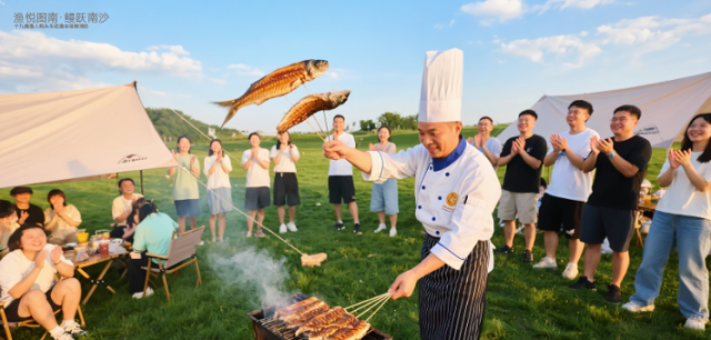 南门广场的“渔悦鹭营”营地更是亲子家庭的快乐天地:和孩子一起挑战巨型鳗鱼洄游主题游戏棋,边玩边get生态知识;围观大厨现场表演炭火烤鳗,看火焰蹿升、肉香四溢,视觉与嗅觉双重享受。天幕帐篷、休闲座椅已就位,秋日露营氛围感拉满!