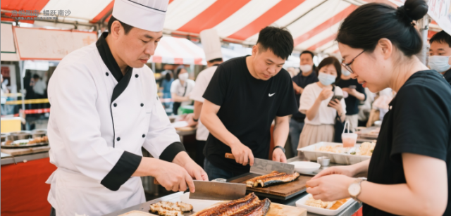 民宿码头广场化身“鳗妙食光集”,多个鳗鱼主题摊位香气四溢。现场试吃现烤鳗鱼串,外皮焦香酥脆、内里嫩滑弹牙,一口下去,治愈力满分!
