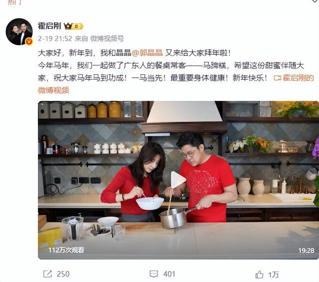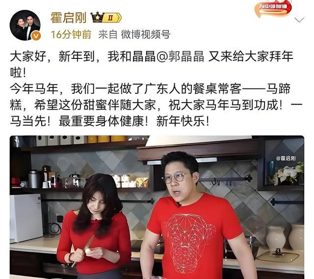 霍启刚对着镜头跟网友唠家常、送祝福的时候,郭晶晶没凑过来抢镜。
