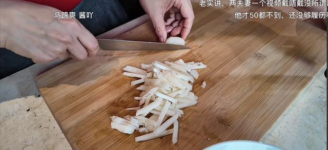 俩人一边做马蹄糕,一边闲聊,氛围特别温馨甜蜜。