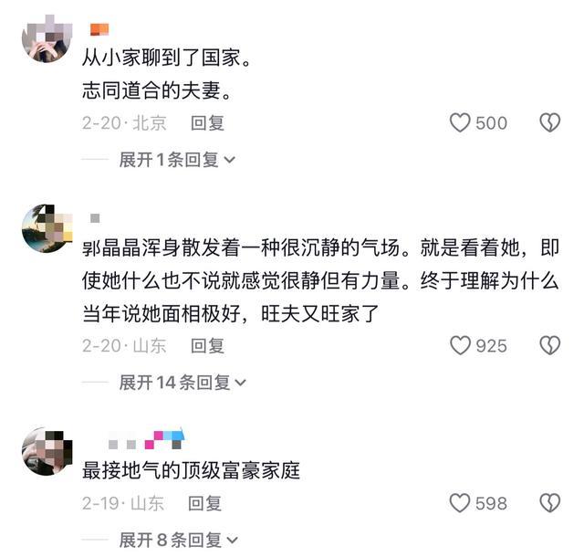 还有人称赞:“郭晶晶嫁入豪门还能守住本心,大气不做作,活该被喜欢!”